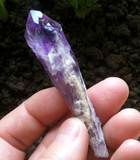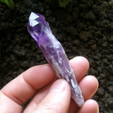 This mini Amethyst Sceptor is sooo stunning and powerful. Its beauty is so majestic in person. When I shot the photo, I couldn't get the lighting to show how gorgeous this piece truly so I held it up to the sunlight so you could see the clarity of this magnificent piece. The crystallization is so natural and lovely. It is a gorgeous deep dark purple.